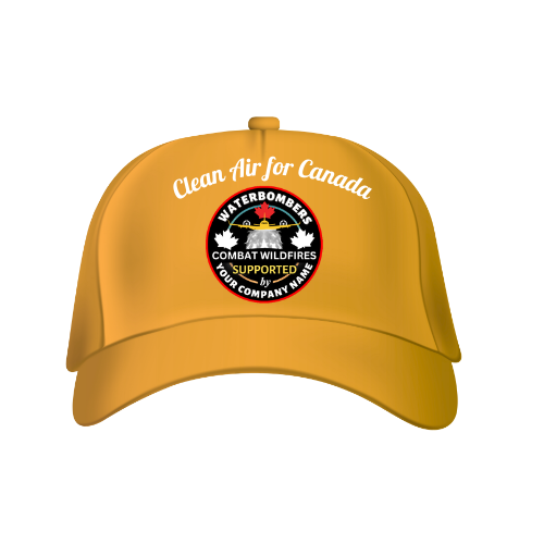 Stand with your Community for “Clean Air for Canada” by showing your support around town with ‘Combat Wildfire’ Water Bomber Caps with your COMPANY NAME imprinted. Join the awareness initiative for an increase in Canada’s Water Bomber fleet to help better control wildfires and bring our air quality back from the most poor rated quality in the world to an acceptable safe and healthy standard for Canadian families and for our young generations to come.